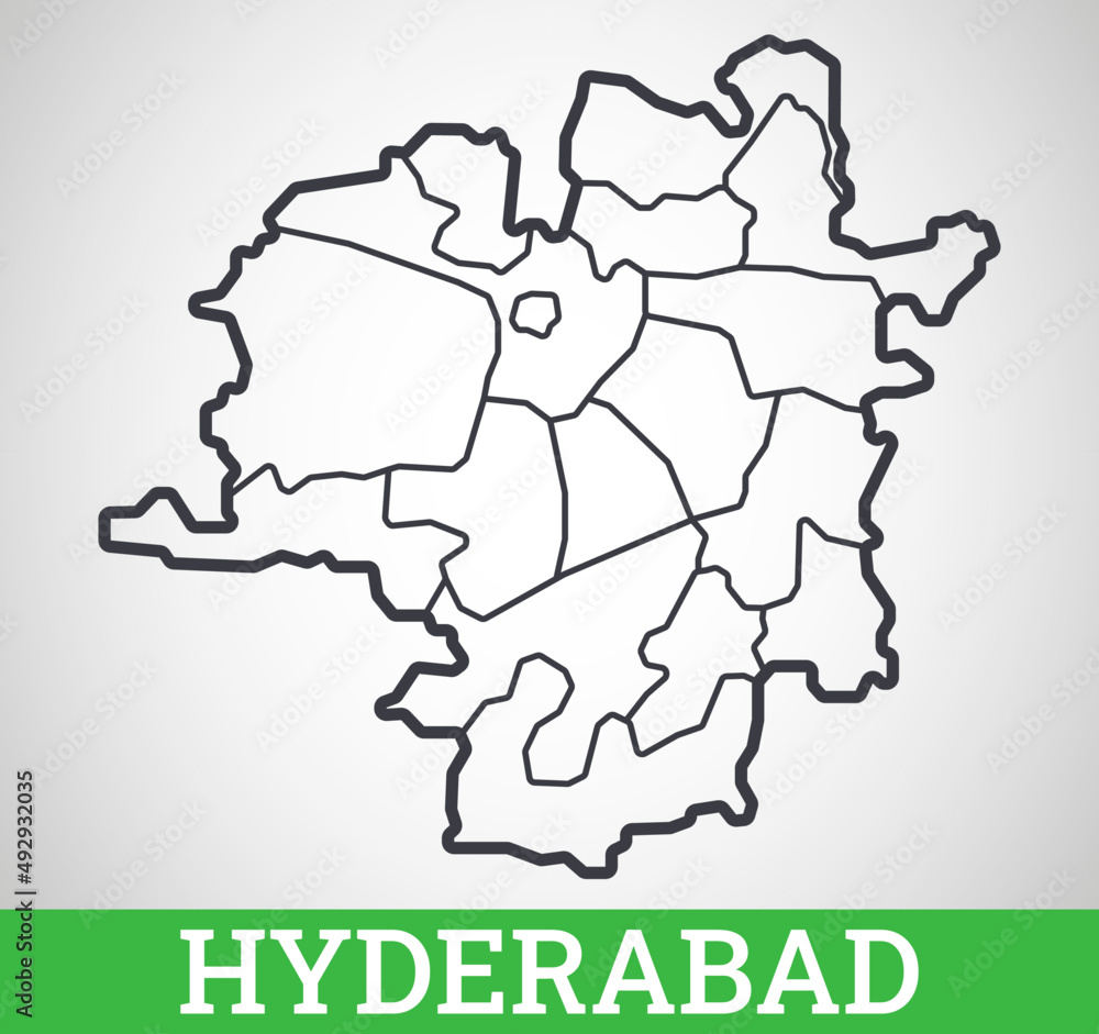 Simple outline map of Hyderabad. Vector graphic illustration